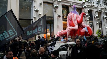 The incident happened on Thursday in a final show of anger before a crucial decision on whether the measure meets constitutional standards. Protesters were also seen holding banners that read: "Macron (French President), take the money of Bernard (world's biggest luxury goods company LVMH's French CEO Bernard Arnault), it will be alright."