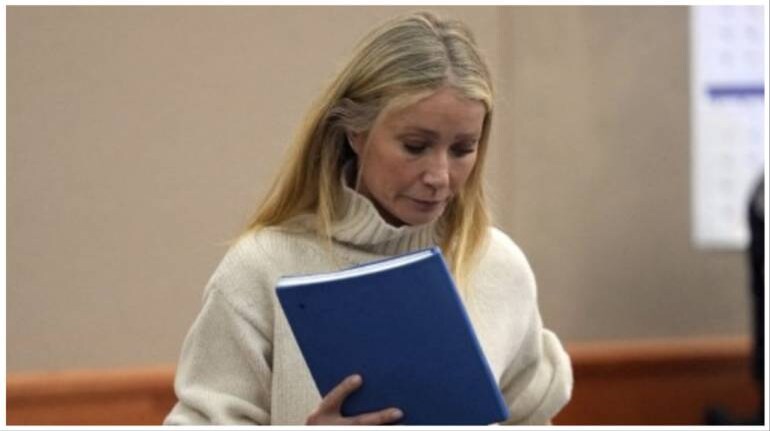 Gwyneth Paltrow, wearing a white turtleneck sweater, sat silently beside Owens as proceedings began Tuesday. She is expected to later take the stand in her own defense.