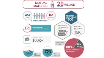 It claims to be the market leader amid homegrown dating apps, with five million subscribers, of whom one lakh are paid. Khanor said 80 per cent of the paid subscribers are "serious".
