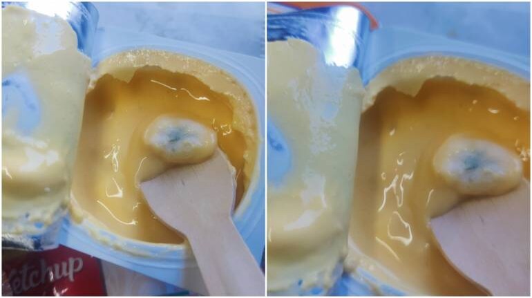 A man travelling aboard the Vande Bharat Express from Dehradun to Delhi’s Anand Vihar was heavily disappointed after finding fungus in the yoghurt that was served to him. The yoghurt, which was part of the meal in executive class, was infected with fungus as seen in the pictures shared by him.