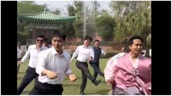 The clip began with two kurta-clad Korean staffers doing the Naatu Naatu hook step. The scene then shifted to the embassy lawns , where the ambassador danced to the song, with two others in background.