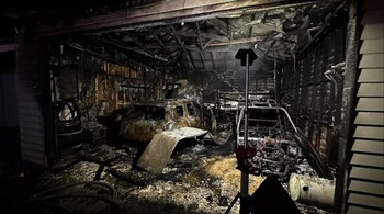 A picture taken after the fire subsided shows the garage burnt to ashes while two cars parked inside were completely destroyed. Luckily, the family was able to escape unharmed.