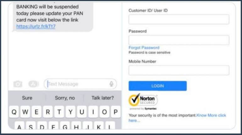 But she decided to click on the link in the message to see how far the scammers would go. On the landing page, titled "Log in to PAN KYC", there were fields asking for the customers' user ID, password and mobile number.