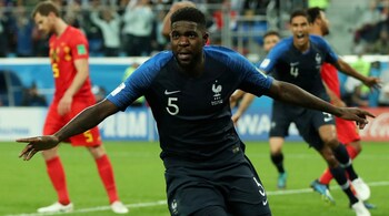 The goal capped an impressive display by Umtiti, who helped to shut out the most productive attack in the World Cup with 14 goals, and meant three defenders have now scored on France's route to the final. Benjamin Pavard and Raphael Varane scored in previous matches.