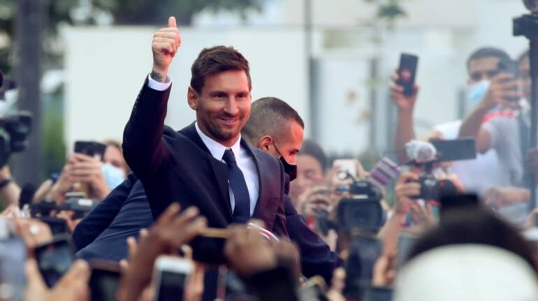 L'Equipe devoted its front page Saturday to the Argentine superstar's "giant salary" -- a minimum of 110 million euros spread over three years.