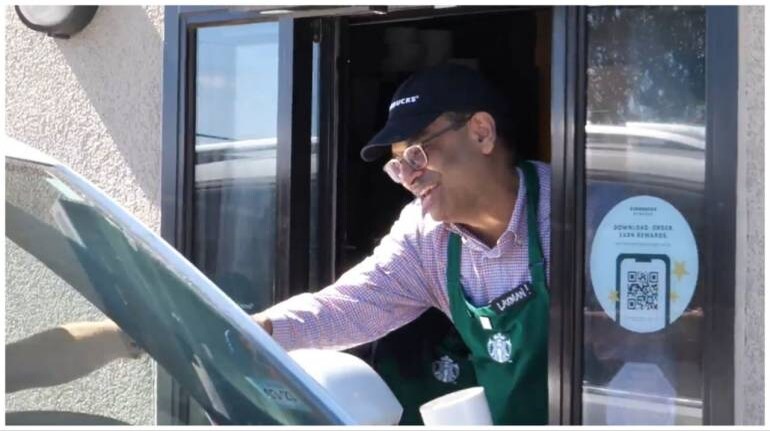 A video summarising Narasimhan's training showed him wearing a Starbucks cap and apron, shaking up frappuccinos, working drive throughs, giving high-fives to his employees and asking for their feedback.