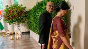 Microsoft CEO Satya Nadella arrived for PM Modi’s State Dinner along with his wife, Anupama Nadella.