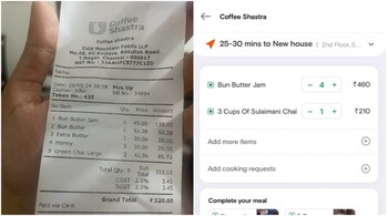A journalist in Chennai has recently shone the spotlight again on the price disparity of items listed on restaurant menus versus the prices mentioned on food delivery apps such as Swiggy. Taking to X, Priyanka Thirumurthy highlighted the "cost of convenience" after she placed an order via Swiggy for "bun butter jam" from a local cafe for Rs 115 each excluding the taxes and delivery charges. The item was priced at Rs 45 only on the restaurant menu offline.
