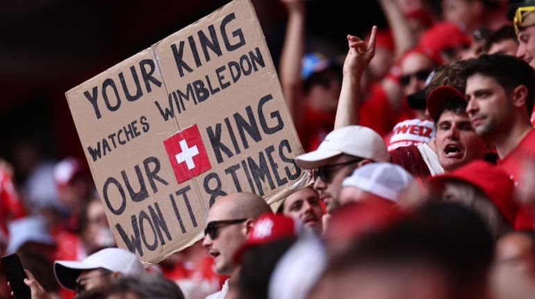 Quality sign from the Swiss fans at the Switzerland-England Euro game:'Your king watches Wimbledon, our king [Roger Federer] won it 8 times' pic.twitter.com/5VjC3exRol