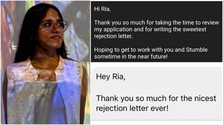 Another response that Chopra received for her rejection email shared with Moneycontrol read, "Thank you so much for taking the time to review my application and writing the sweetest rejection letter. Hoping to work with you and Stumble sometime in the near future."
