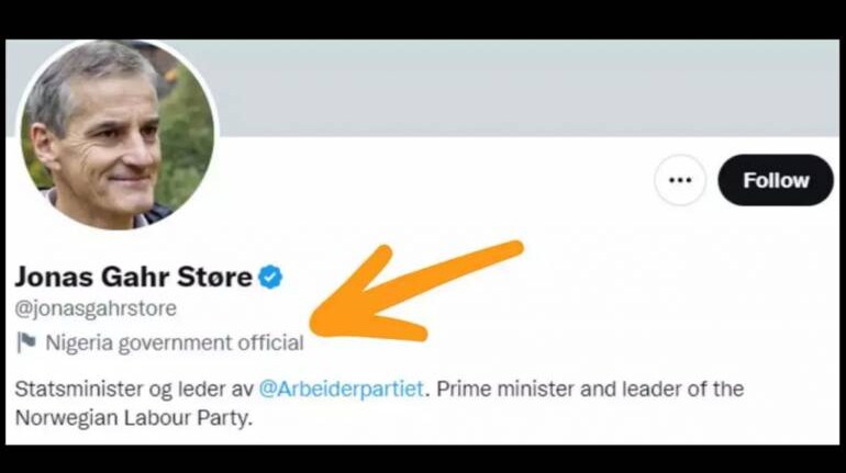 Apart from that, tags also appear stating who the handle is assigned to. And one prey to a gaffe by Twitter was observed when Norway's Prime Minister Jonas Gahr Støre had his account automatically updated to say he's a "Nigerian Government Official".