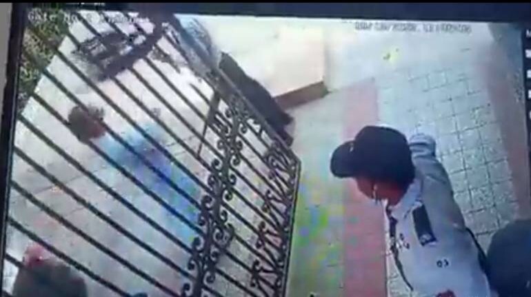 Journalists who tweeted the video reported that the building's security guard was slapped by a woman angry about a delay in the gate being opened.