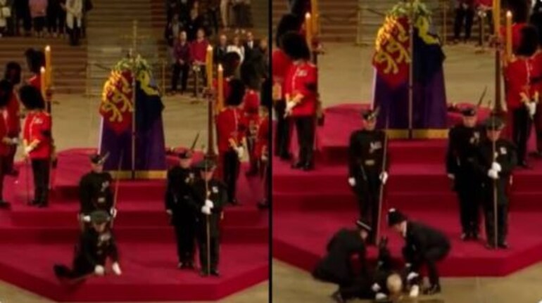 A Royal guard fainted and fell off the podium where he was protecting Queen Elizabeth's coffin. Footage from the BBC telecast shows the police rushing to help the guard after he collapsed face down.