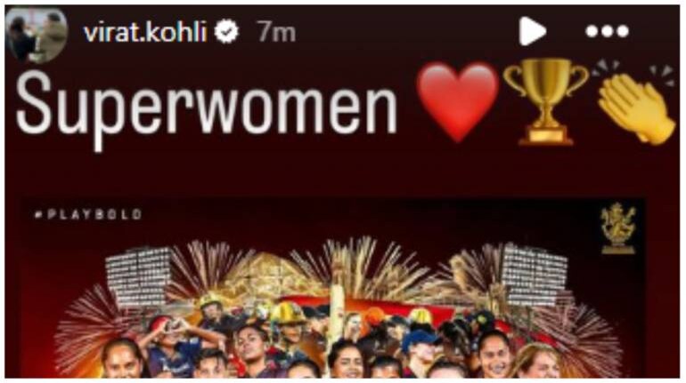 Following the victory, former RCB captain and batting mainstay Virat Kohli sent his congratulatory wishes for the team, referring to them as "Superwomen" in an Instagram story on Sunday.