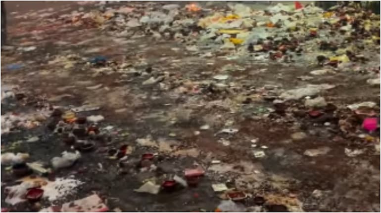 A video filmed in Delhi’s Punjabi Bagh area has ignited debate online after showing large heaps of post-Diwali garbage collected in front of a Shiva statue on Ring Road. The clip, recorded a day after the festival, showed discarded flowers, burnt candles, plastic packaging and remnants of puja offerings strewn across the roadside.