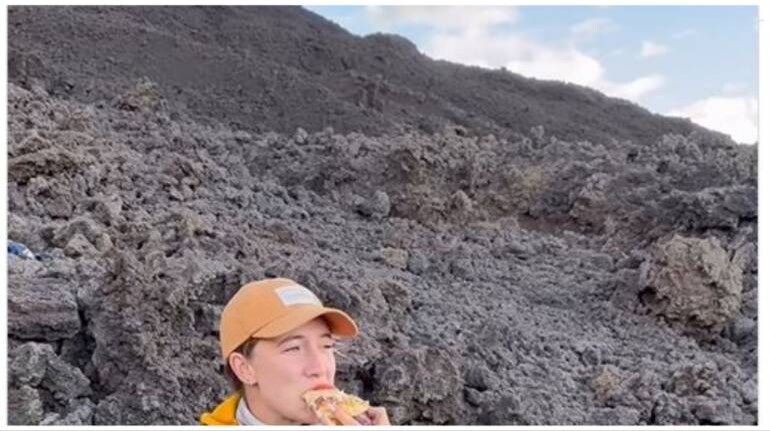 The woman, identified as Alexandra Blodgett- a traveller- shared the video on her Instagram page in which she could be seen eating an unusual pizza, which was made from a volcano.