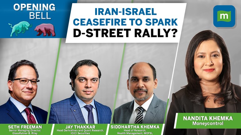 Asian markets rise after US President Donald Trump announced that Iran and Israel have agreed to a ceasefire. Iran’s Foreign Minister Seyed Abbas Araghchi refuted claims that Tehran had agreed to a U.S.-brokered ceasefire deal with Israel, while signaling his country was ready to stop hostilities. The GIFT Nifty is indicating a strong start for the Indian market. Meanwhile, The Nifty 50 reversed some of Friday's gains and closed 0.6 percent lower. The index remained within the previous day's range, indicating indecision among bulls and bears, and suggesting consolidation. In the upcoming sessions, the index is expected to remain in the range of 24,800–25,100 until it gives a decisive close on either side. Above 25,100, the level to watch is 25,200, as sustaining above it could open the door for a bullish trend. However, below 24,800, the immediate support is at 24,700, and a break below this level could drag the index toward 24,500, according to experts. Catch Nandita Khemka in conversation with Seth Freeman, Senior Managing Director, GlassRatner-B. Riley, Siddhartha Khemka, Head of Research - Wealth Management, MOFSL, Jay Thakkar, Head - Derivatives and Quant Research, ICICI Securities