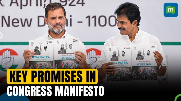 The Indian National Congress has released its 48-page manifesto ahead of the Lok Sabha polls. The manifesto promises a socio-economic caste census, legal guarantee to MSP, cashless insurance of up to Rs 25 lakh, an increase of wage under MGNREGA to Rs 400 per day for workers, one lakh rupees per year to poor families, and many more. Watch the video to learn about the key promises of Congress manifesto 'Nyay Patra'.