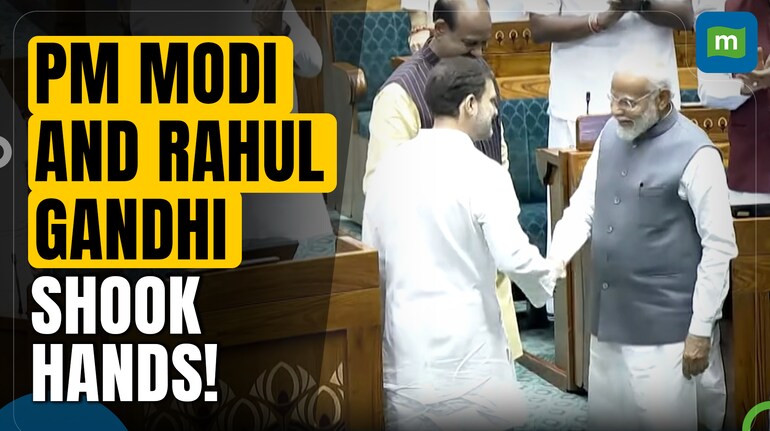 Prime Minister Narendra Modi and Leader of Opposition Rahul Gandhi on Wednesday shook hands after congratulating Om Birla for being elected as Lok Sabha Speaker for the second term. Lok Sabha elected Om Birla as Speaker by voice vote on Wednesday.
