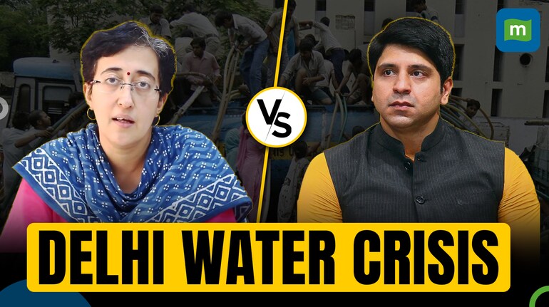 Delhi Water Minister Atishi supervises water distribution near Akshardham during a severe water crisis, while BJP spokesperson Shehzad Poonawalla raises concerns about AAP's management of the situation.