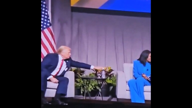 A video of former US President Donald Trump adjusting the water bottle cap at the National Association of Black Journalists convention in Chicago became viral. Social media users suggested Trump tightened the cap in response to a challenge from ABC's Rachel Scott, who questioned why Black voters should support him considering his previous remarks about Black individuals and journalists.