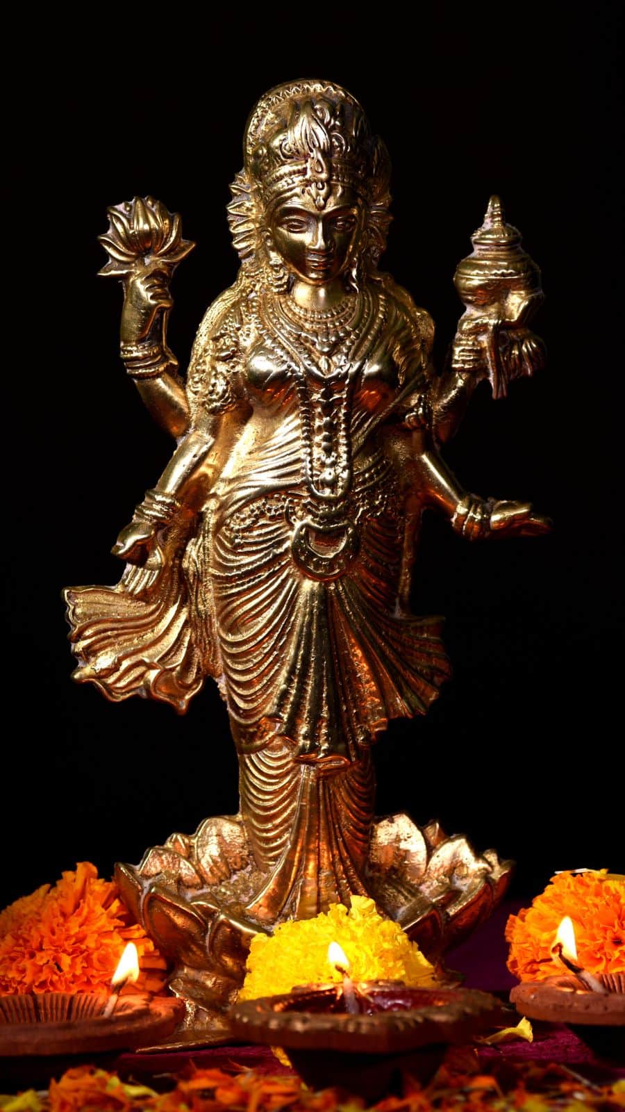Goddess Varalakshmi is a form of Goddess Lakshmi, the consort of Lord Vishnu. She emerged from the milky ocean and is revered for granting blessings and fulfilling the desires of her devotees.