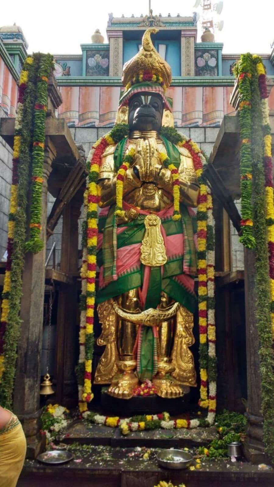 This temple features an 18-foot single-stone Hanuman statue and Dravidian-style architecture. It comes alive during Hanuman Jayanti with grand celebrations.