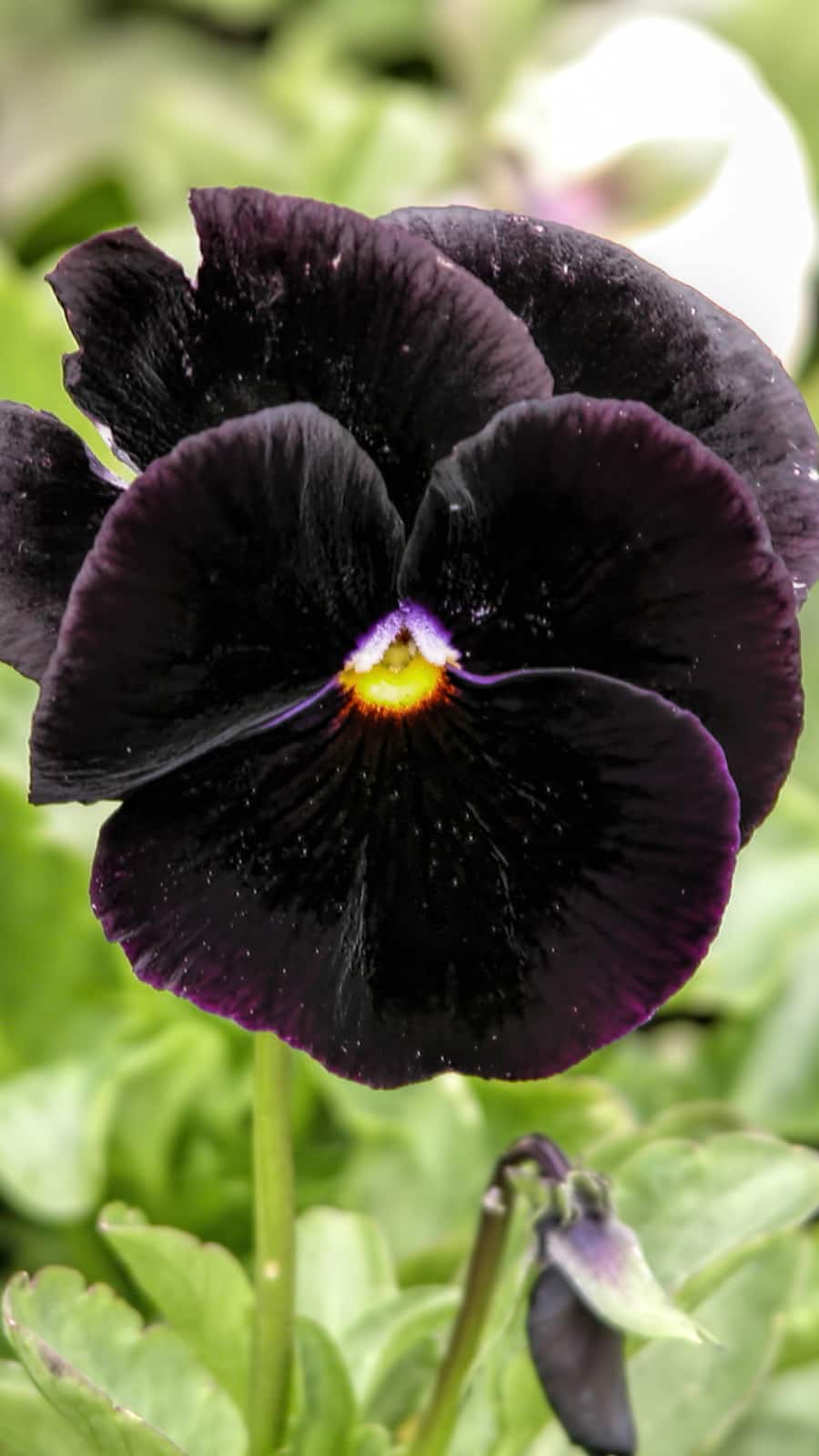 The Black Pansy is a deep purple flower that appears black in winter’s chill. It thrives in colder weather, blooming in well-drained soil with full sun to partial shade.