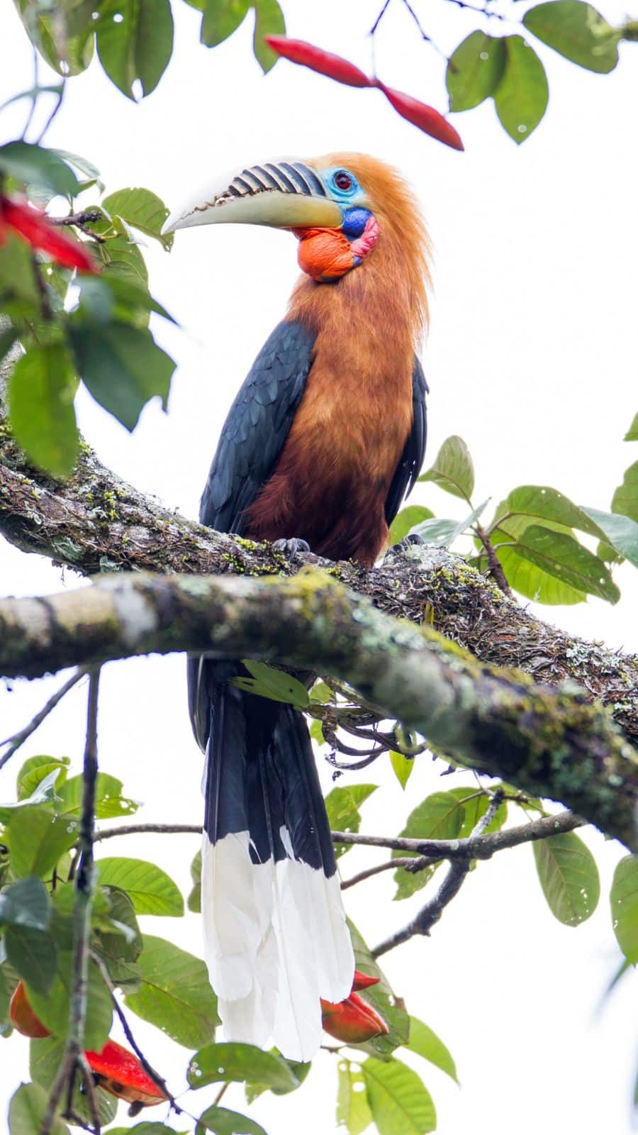 Native to the forests of Northeast India and Southeast Asia, this large bird is known for its striking casque and vibrant plumage. It thrives in dense forest habitats.