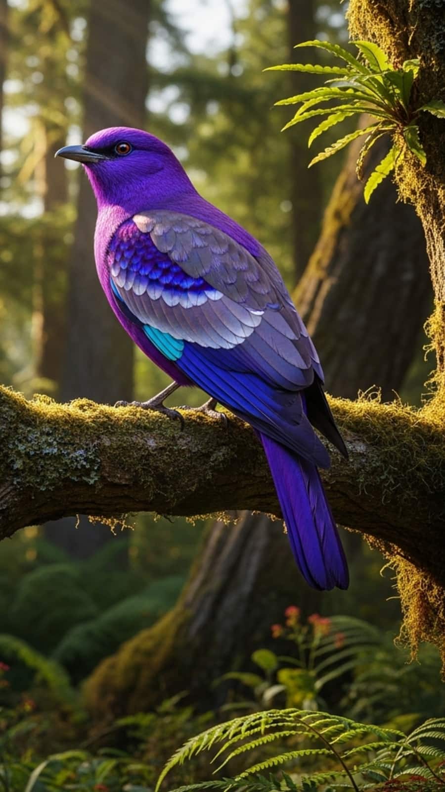 A forest-dwelling stunner with deep indigo-purple plumage that looks almost magical in sunlight.