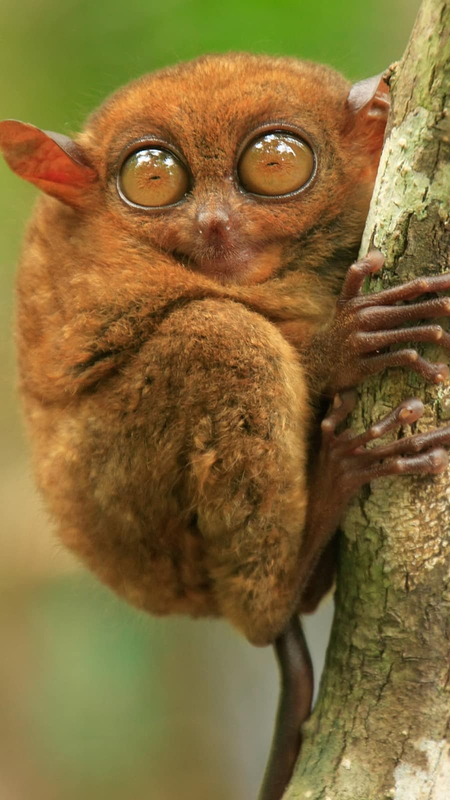 This small primate has the largest eyes relative to its body size of any mammal. Their enormous, soulful eyes give them superb night vision to navigate their dense forest habitats.