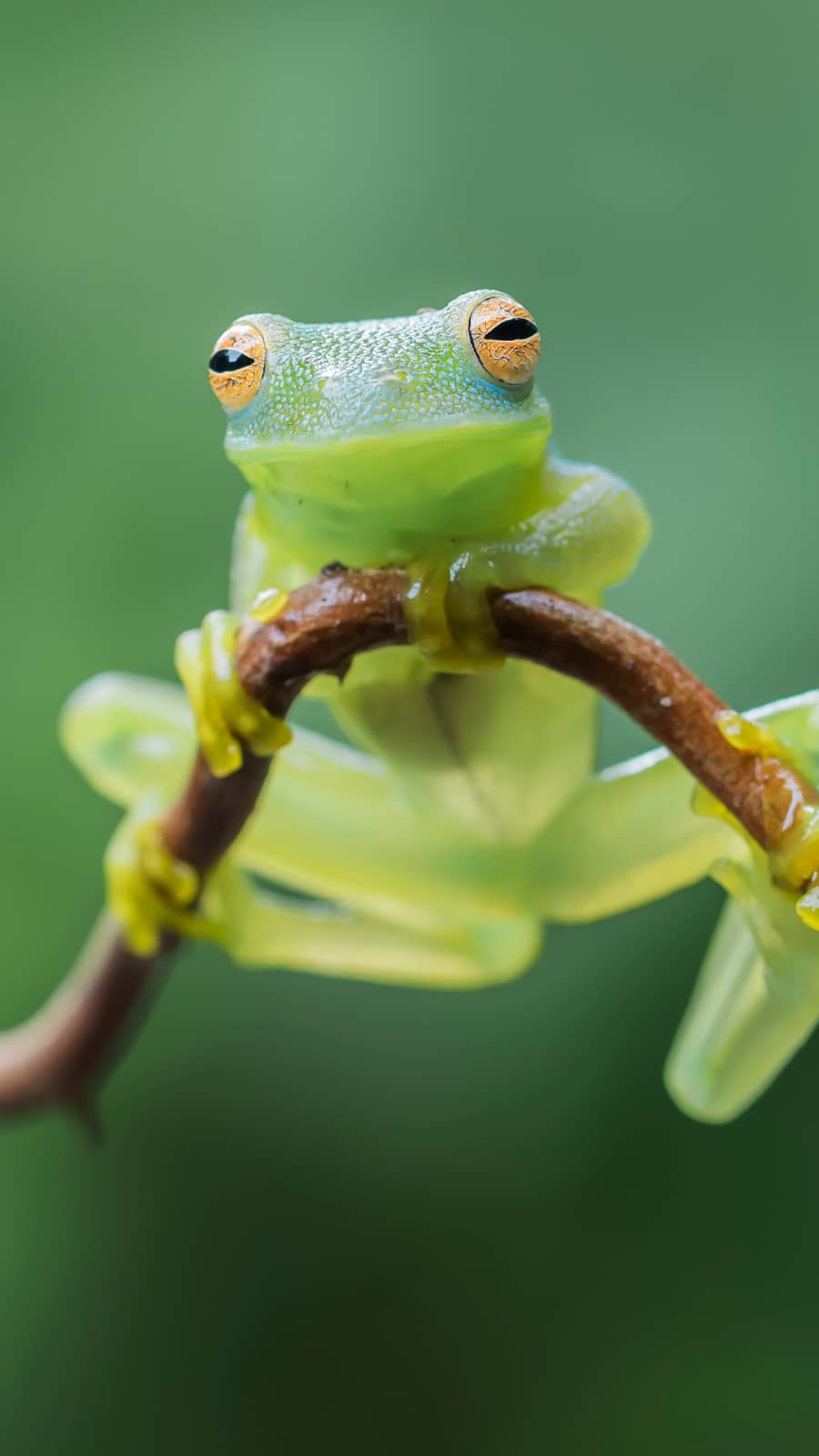 Glass frogs, native to Central American rainforests, have lime green skin, but their transparent bellies reveal their internal organs, earning them the name ‘glass frogs’.