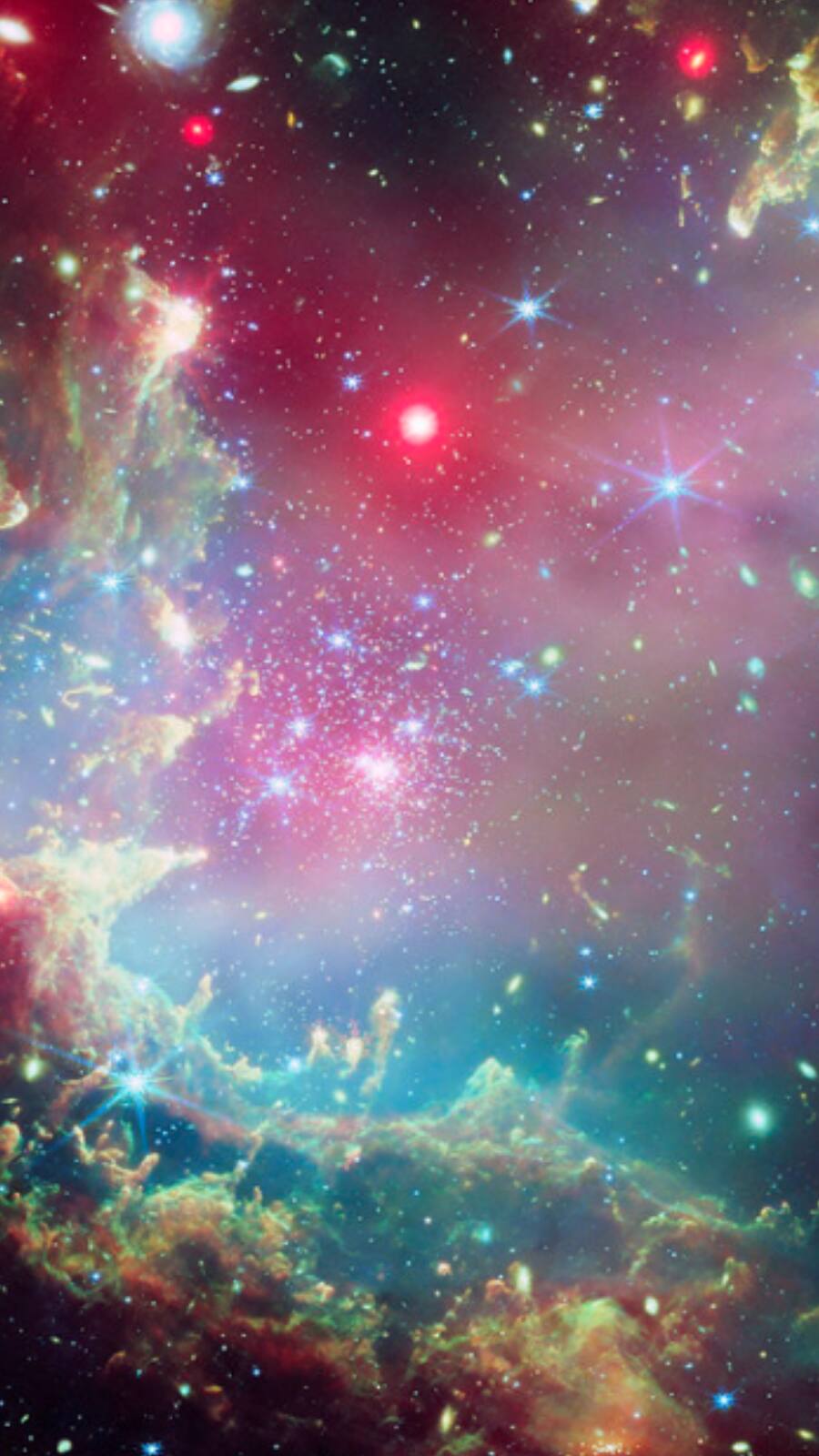 NGC 2207 and IC 2163 slowly collide, creating bursts of star formation and streams of gas, as captured by Hubble and Webb telescopes.