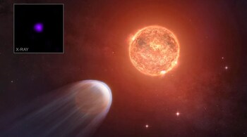 The star, known as TOI 1227, is small and cool. But in X-rays, it’s much brighter than our Sun. Its powerful radiation keeps tearing the baby planet apart.