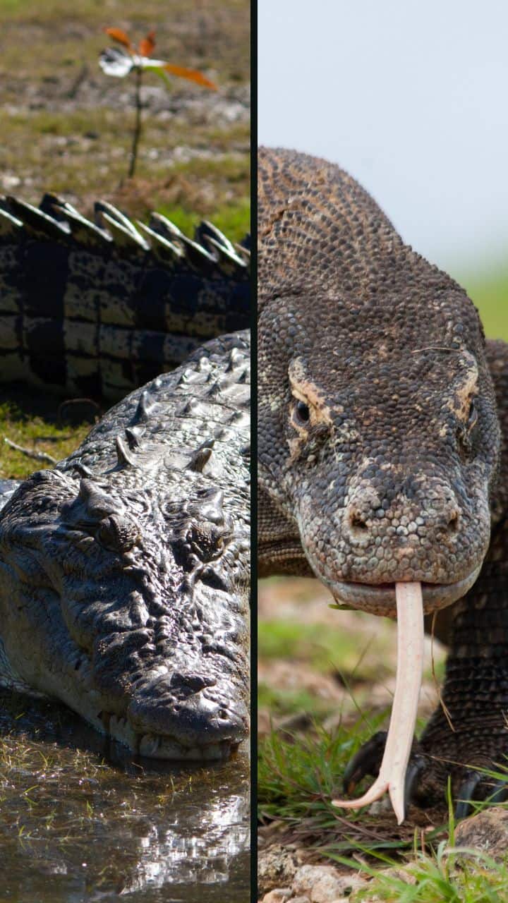 Komodo Dragons weaken their victims by poisoning them until they collapse from blood loss. Whereas Crocodile drag prey underwater and use the deadly “death roll” to tear victims apart.
