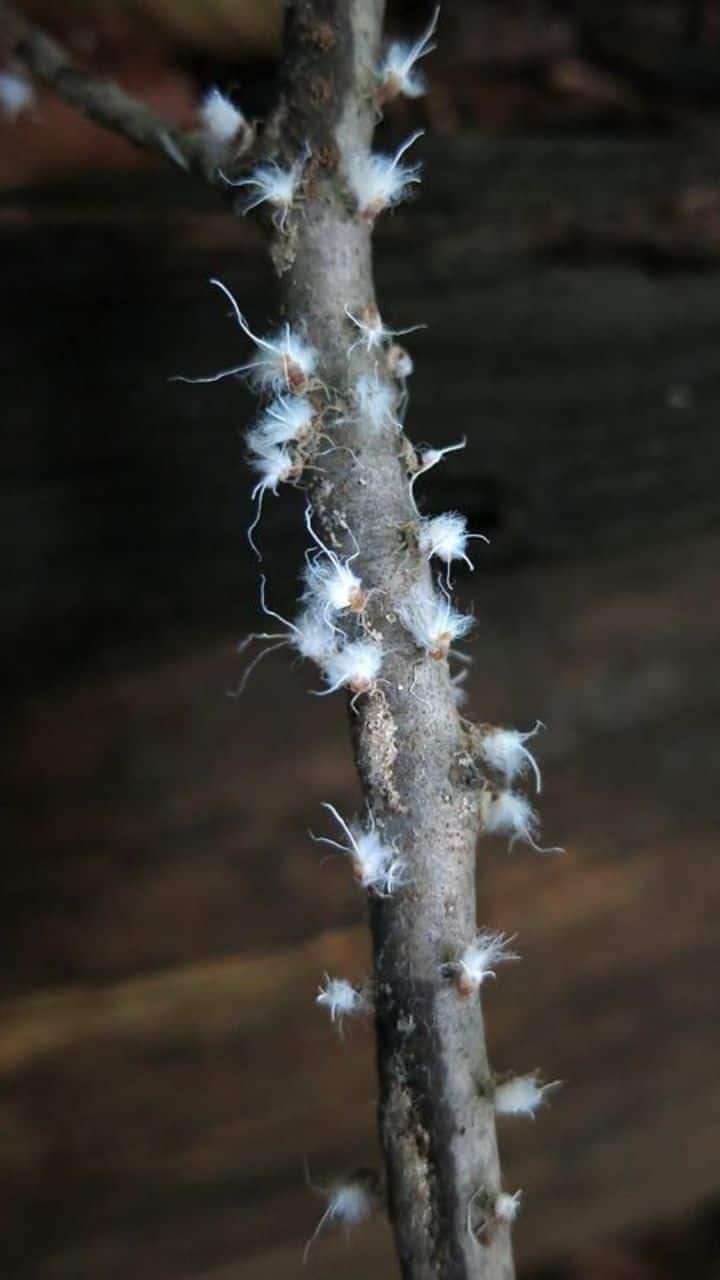 Beech Blight Aphids, tiny insects are known for their dance in unison. Their waxy white bodies resemble snow dusting.