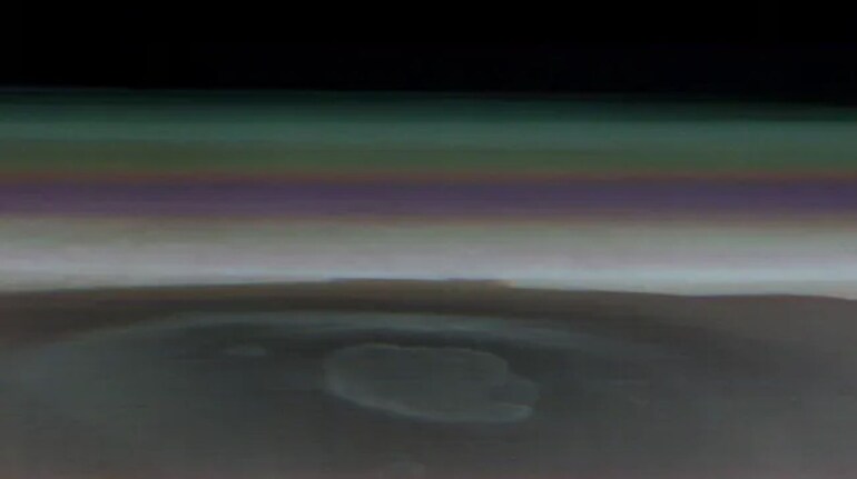 A delicate purple layer has been observed, attributed to a blend of atmospheric dust and bluish water-ice clouds. Researchers indicate that the blue-green layer represents water-ice clouds that have extended approximately 30 miles (48 kilometres) into the Martian atmosphere.