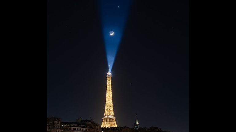 French astrophotographer Gwenaël Blanck captured the moment on 1 February. The image, taken near the Seine River, shows Venus and the moon glowing together. A blue light from the Eiffel Tower adds to the striking scene. Saturn also appears faintly, though harder to see.