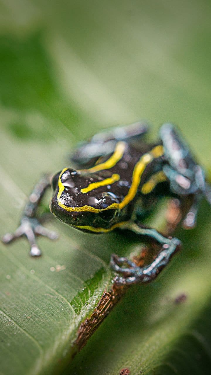 Females lay small clutches of eggs on leaves, requiring a father’s careful attention to survive.