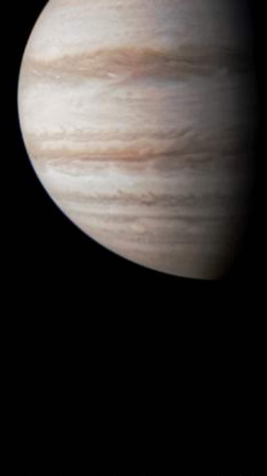 Jupiter’s colourful belts and zones are visible in this image, captured during Juno’s 54th flyby. The image details cloud patterns that extend deep into the planet’s atmosphere.