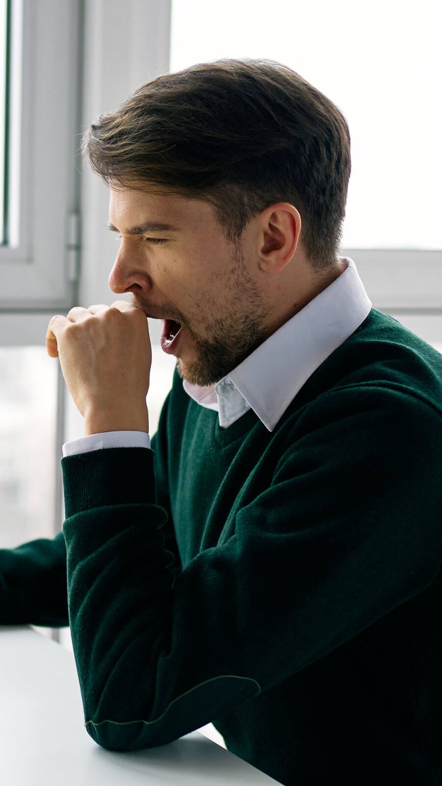 Yawning indicates tiredness. Seeing someone yawn can subconsciously remind you of your own need for rest.