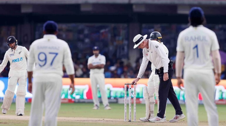India buried the ghosts of their first innings by piling up 462 in their second, led by a superb 150 from Sarfaraz Khan and a sparkling 99 from Rishabh Pant. At 408/3, India looked set to post a formidable target for New Zealand, but the introduction of the second new ball triggered a collapse, with the visitors reducing India from 408/3 to 462 all out, claiming the last seven wickets for just 54 runs. Bad light and persistent rain brought an early close to the day. New Zealand will need 107 runs to win on the final day.