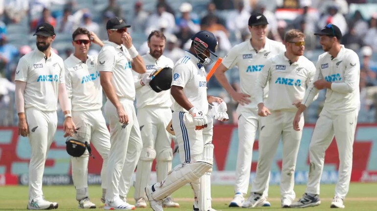 India had negotiated a tricky passage of 11 overs on the first evening, losing Rohit’s wicket in the process. And though runs didn’t exactly flow off the bat, Shubman Gill and Yashasvi Jaiswal gave India a solid platform in the first 40 minutes of play. Gill, in particular, was severe on anything short or wide, but his exit, missing a straighter one from Santner to be trapped in front, triggered an almighty collapse.