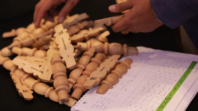 Teams raise paddles to place bids when the auctioneer shouts out a player's name. Bidding rises in predetermined steps. The player gets sold to the only team that is still interested.