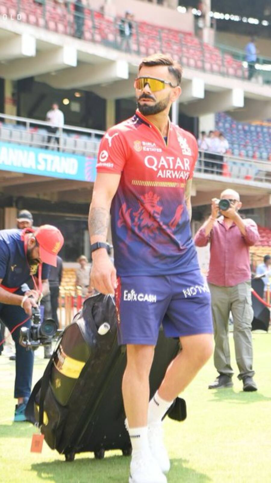 King Kohli arrives at the practice session and unbox event ahead of the IPL 2025.
