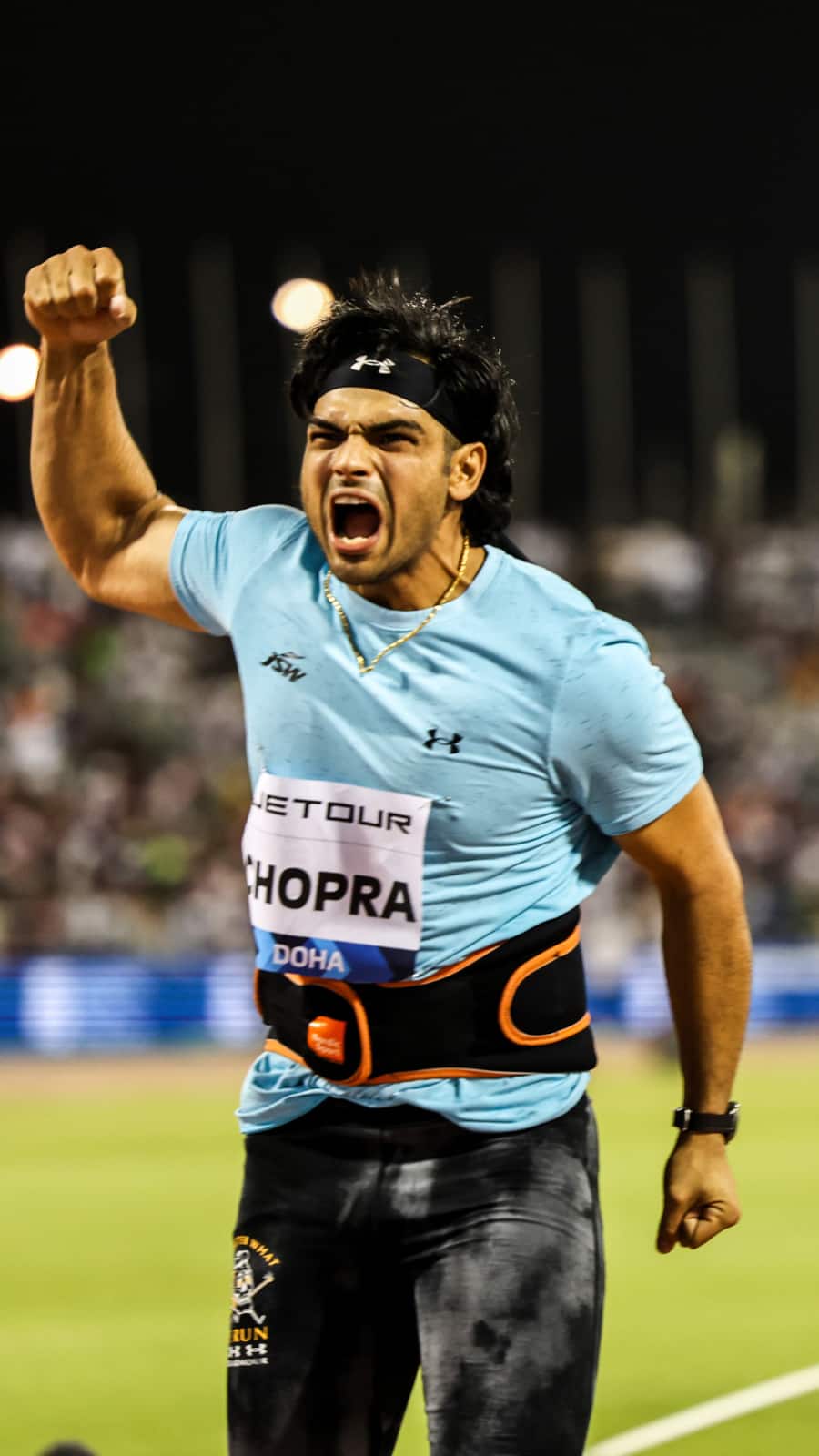 India’s star athlete celebrated smashing 90m with fans in Doha. Here are some pictures.