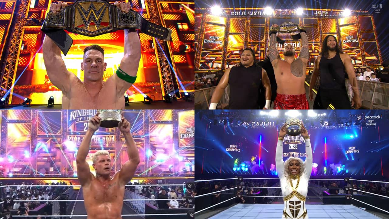 WWE Night of Champions 2025 Highlights, Results: John Cena once again managed to successfully defend the WWE Undisputed Championship, this time against CM Punk at the Night of Champions 2025 in Riyadh, Saudi Arabia. The match started with Punk holding the edge until Cena accidentally knocked out the referee. This led to the introduction of Seth Rollins along with his new formed alliance, who also showed intentions of cashing in his Money In The Bank briefcase. However, that move was foiled by Cena and it led to more chaos as Penta and Sami Zayn tried to disperse the crowd. A brief moment of peace was also witnessed between Punk and Cena, who shook hands, after all the chaos but it also brought back the memories of the latter turning heel against Cody Rhodes in the presence of 'Final Boss' The Rock. However, Punk anticipated the move and right when he was about to counter it with his signature GTS (Go to Sleep), Rollins once again joined the action and took down his long running nemesis Punk with the briefcase, followed by a Stomp. Cena then threw Rollins out of the ring and went for a quick cover, which got him the win.