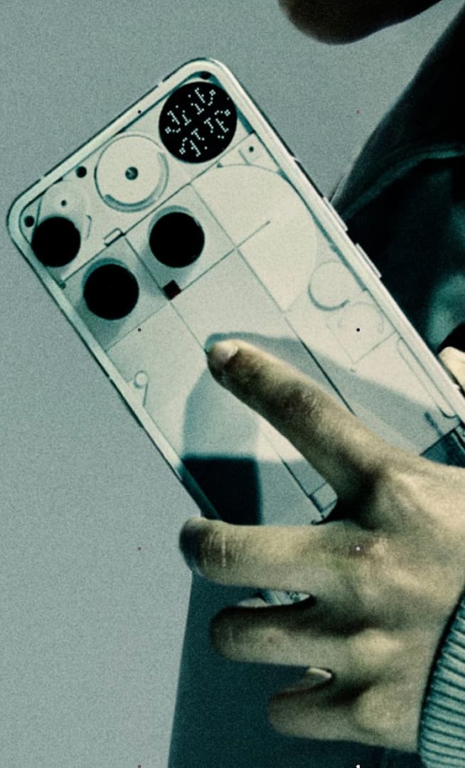 Nothing Phone (3): transparent, 1.87mm bezel, 489-LED Glyph Matrix. Unique Glyph Button and Glyph Toys for customizable, interactive notifications, unlike Apple.