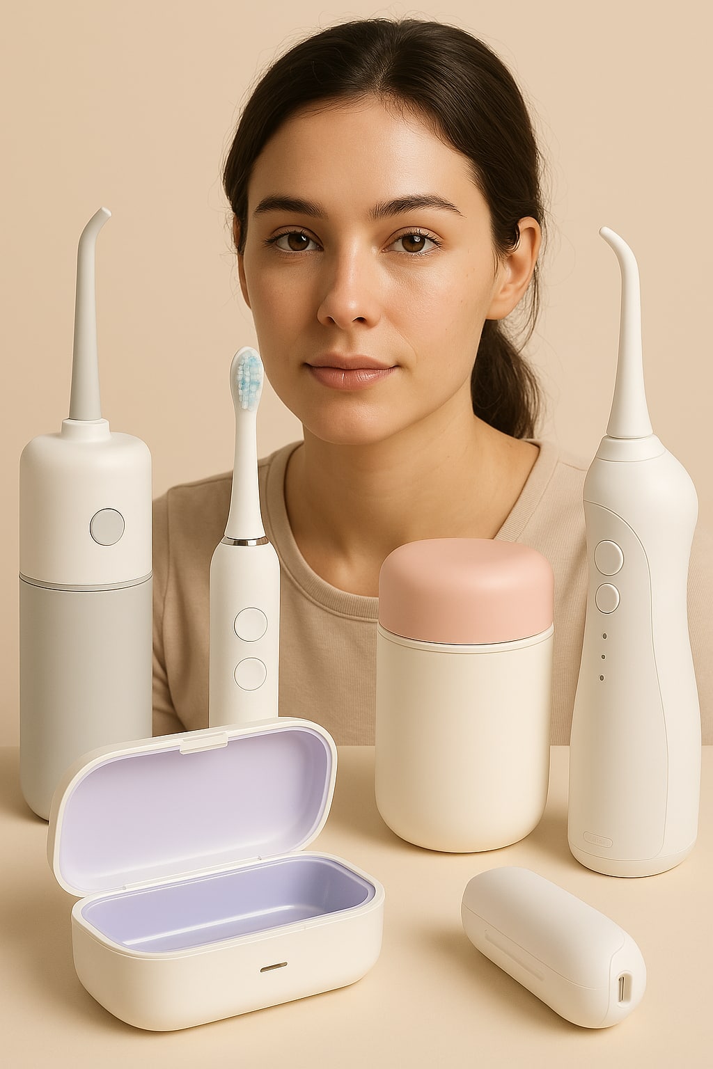 A portable water flosser that improves gum health and hygiene—especially useful for those with braces or implants.