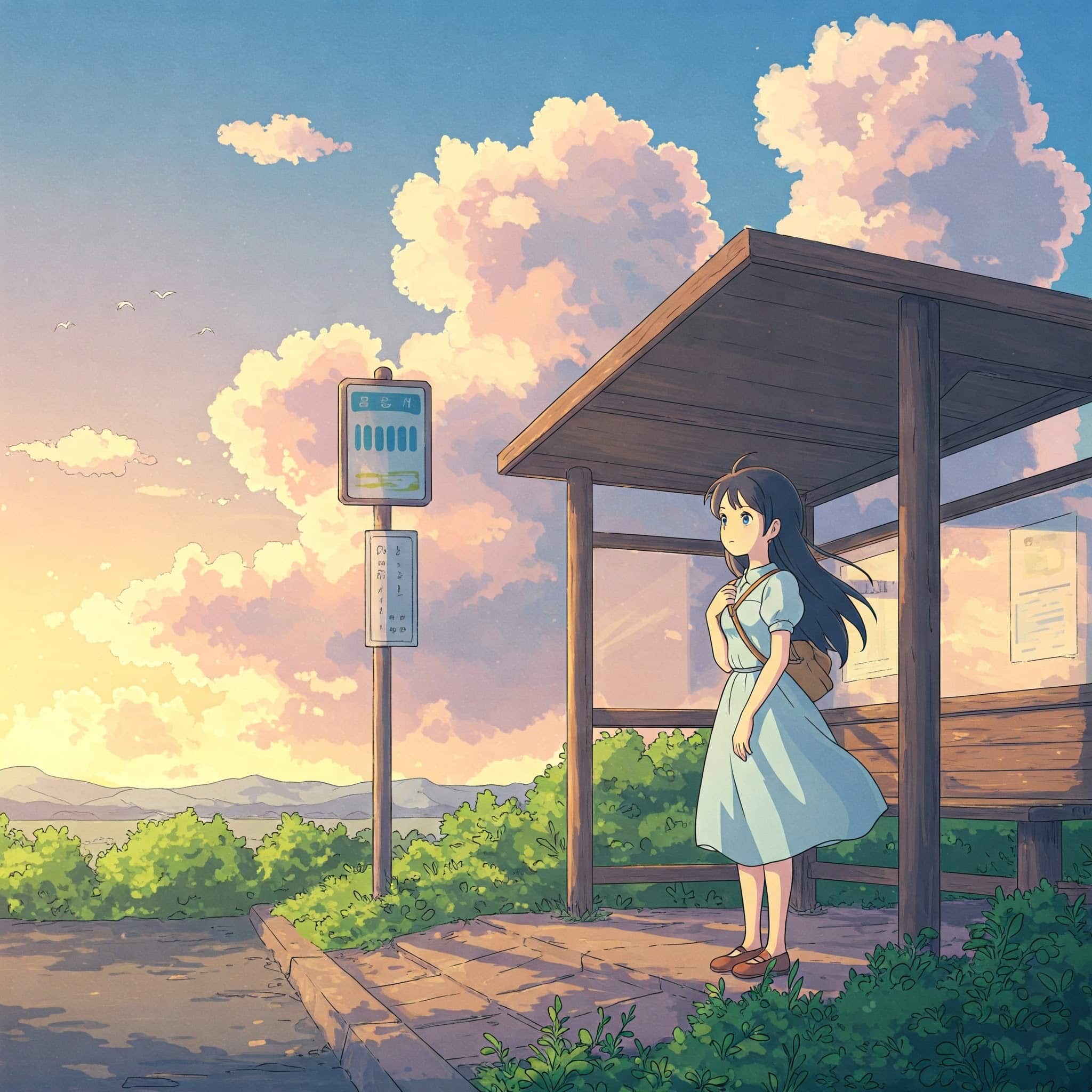 Now enter a prompt like “Create an image in Ghibli style showing a girl waiting at the bus stand in pastel and warm colour tones”.